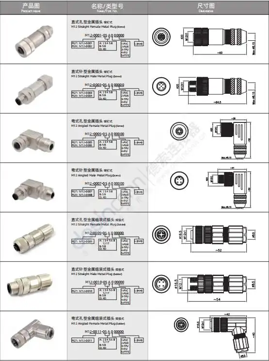 常见的 M12 针芯数量包括: