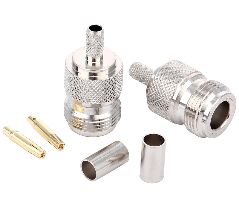 N-K-3射频连接器母头外螺内孔 压接 可接50-3线 RG142线 全铜镀镍