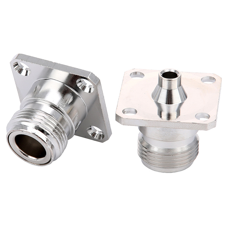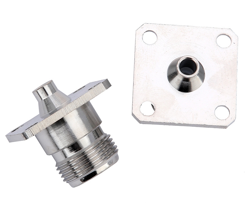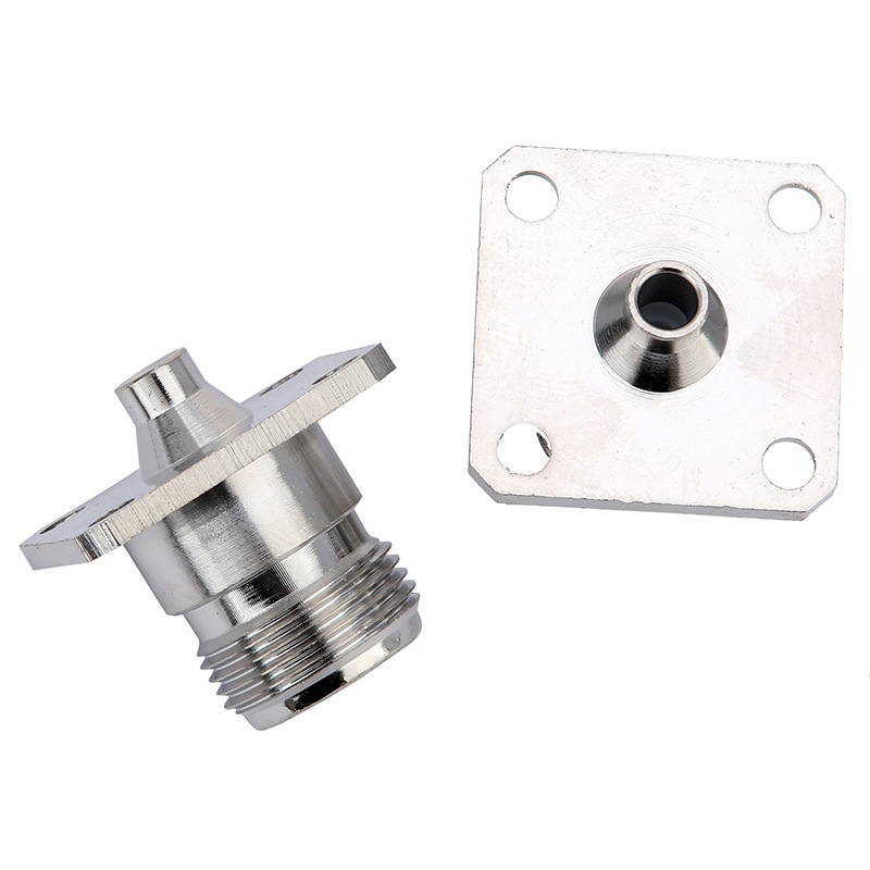 N-KFB3全铜射频同轴连接器 4孔法兰25*25mm N型母头外螺内孔RG402