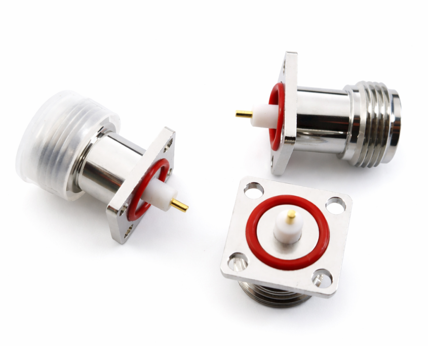 50欧姆N-KFD法兰方板母座终端安装N-50KY螺母固定微带连接器